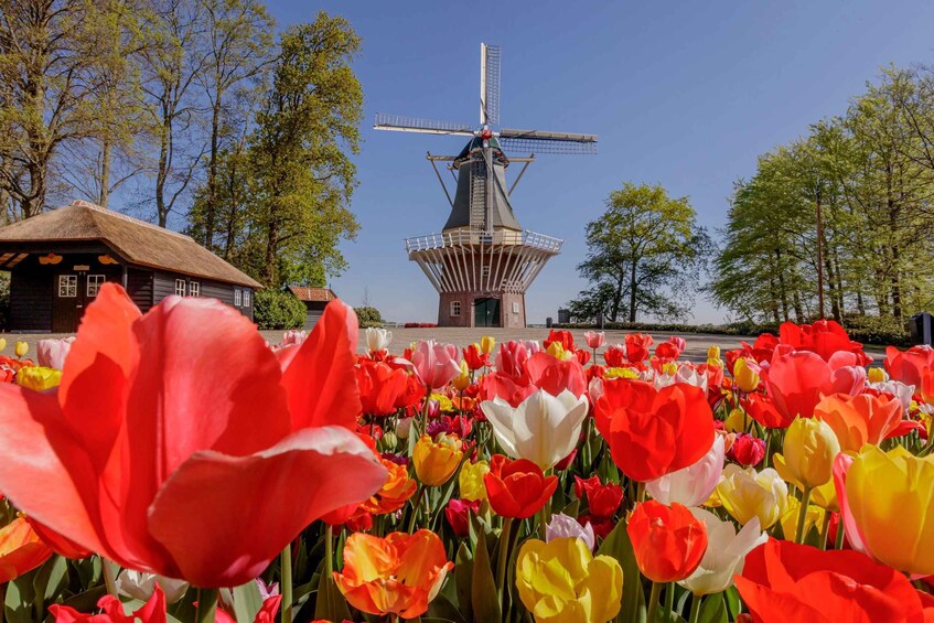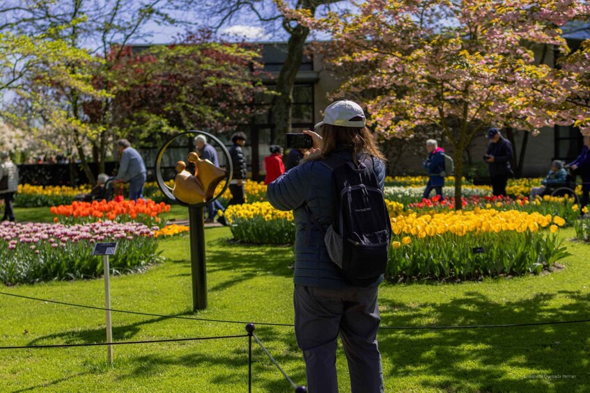 Keukenhof offers endless photo opportunities and peaceful strolling paths. Spend your time as you wish: admire the expert floral designs, learn about bulb-growing traditions, enjoy a leisurely picnic in the gardens, or sip coffee at one of the on-site cafés. Our flexible itinerary means you control your day—linger longer in the spots you love, or follow the garden map to catch every highlight.
