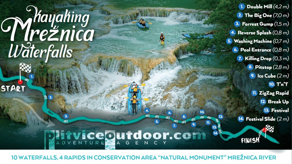 - Connect with nature as you kayak down waterfalls and dive into clear waters
