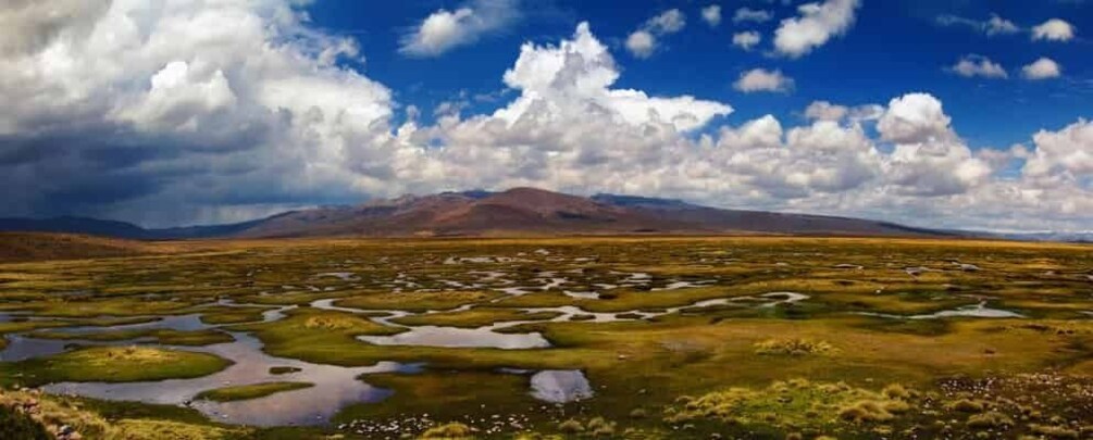 1:30 p.m. On the way back we will stop at the volcano viewpoint (highest point 4,910 metres above sea level), in the Tocrapampa wetlands where the diversity of wild birds, herds of alpacas and llamas can be seen; In Pampa Cañahuas we will observe herds of vicuñas (part of the Aguada Blanca and Salinas National Reserve), the beautiful South American camelid with one of the finest fibres in the world.