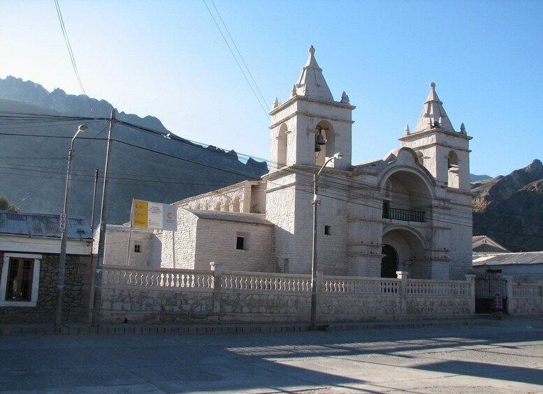 At approximately 08:30 we will arrive at the Cruz del Cóndor from where we can appreciate one of the deepest canyons in the world and where the condor sanctuary is located. On the way back we will stop in the towns of Pinchollo, Maca and Yanque that have beautiful colonial churches; as well as at the Antahuilque and Choquetico Viewpoints from where we can observe the pre-Inca tombs and models and the beautiful landscape of Colca with its impressive terraces. In addition, we will appreciate the typical costumes, the camelids and trained birds, and traditional drinks such as the Colca Sour made from Sancayo.
