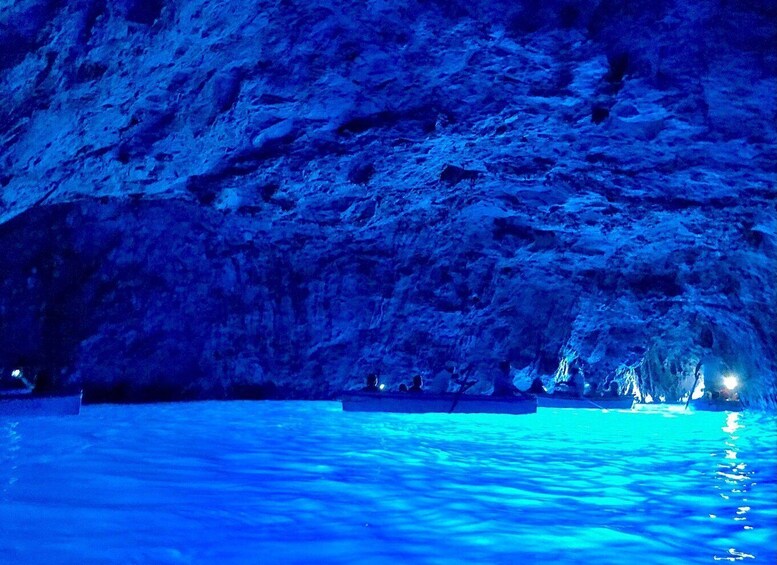 Sailing along the lovely Amalfi coast to Capri, passing through Li Galli Islands and the protected marine reserve of “Punta Campanella”, having stunning views by seaside of the charming beauty which this land offer, and once arrived in Capri the tour of the Island begins discovering the enchanting white grotto, then proceeding ahead to see the great natural arch and the wonderful faraglioni rocks the most famous attraction of Capri island.