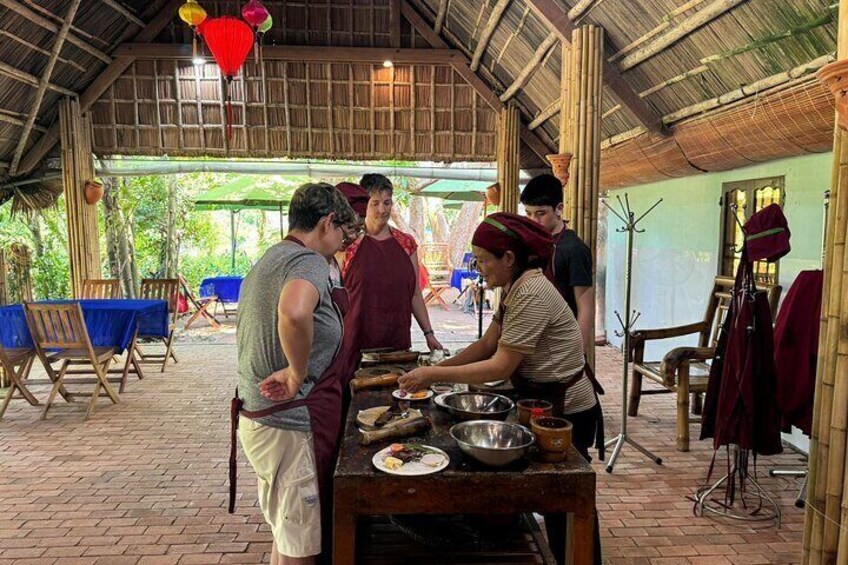 In this village, you'll have the opportunity to meet and interact with friendly locals, learn traditional vegetable farming methods, and do a cooking class. Together, we'll prepare authentic Vietnamese dishes, which we'll enjoy for lunch at the end of the experience.