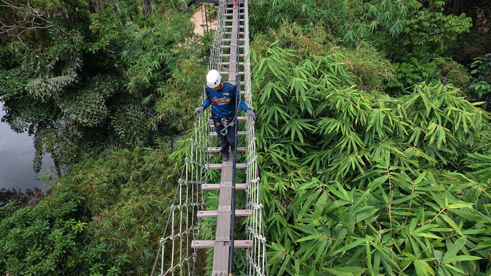 Includes 5 ziplines, 4 canopy walks, 3 spiral staircases, and a 15 m abseiling. The longest zipline is 250 m. A shorter, lighter option for a fun adventure.