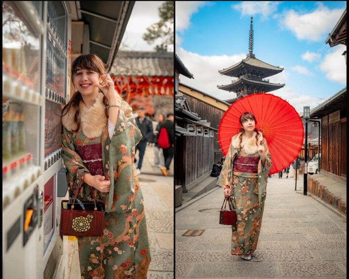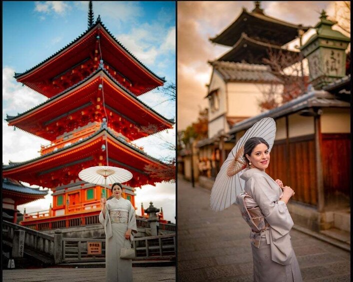 Some options include a FREE kimono photoshoot in Gion. Kimono rental and dressing are included at no extra cost. The time spent wearing the kimono is counted within the selected session duration and is planned to be simple and smooth so the experience stays relaxed.