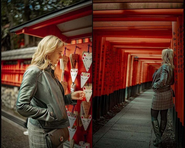 The photographer will capture natural moments and also give gentle and simple pose guidance. You do not need any experience. The guidance helps you feel relaxed and confident in front of the camera. The walk is unhurried, so you can enjoy Kyoto while your journey is recorded through professional photography.