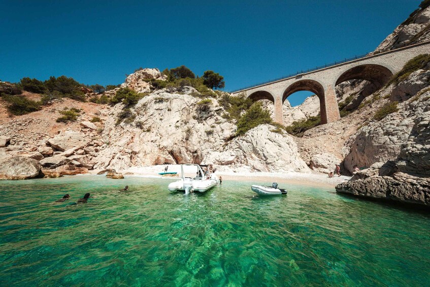 Option “Caves & Wild Creeks” (Côte Bleue): Head North to discover the Madrague Cave, watch the locals jump from the rocks at La Redonne, and swim in the stunning Calanque de l'Éverine.