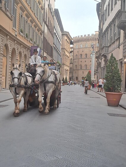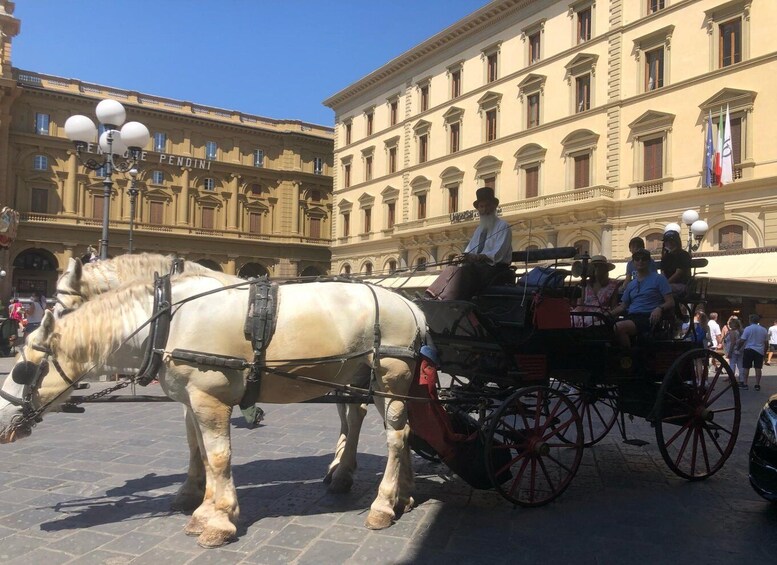 A licensed tour guide will tell you stories, legends and interesting facts that bring the piazzas and palaces to life, turning every step of the way into a fascinating adventure. Piazza della Signoria, Piazza Santa Croce, and the narrow streets of the historic centre become your stage, and the leisurely pace of the carriage allows you to take in every detail at your own pace.