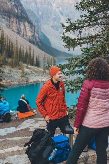 Start your tour effortlessly with our stress-free pick-up from one of our expert guides in Banff, Canmore, Harvie Heights or Lake Louise. Choose from three tour options: a morning tour starting at 8:30 am in Canmore / 9:00 am in Banff, an afternoon tour starting at 1:00 pm in Canmore / 1:30 pm in Banff, or a Moraine Lake golden hour evening tour with pickups starting at 5:00 pm depending on sunset timing, which adjusts as the days get shorter. The golden hour experience is only available at Moraine Lake.