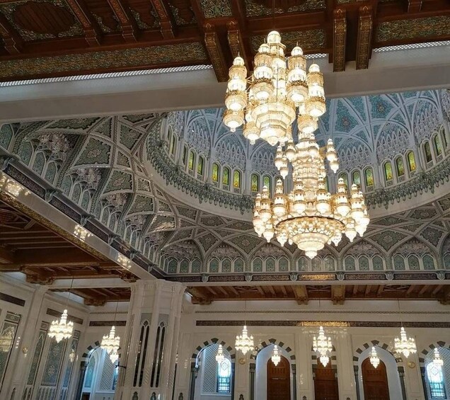 Start with a visit to the Sultan qaboos Grand Mosque and then continue to Royal opera house (fee about 8.3 USD) then to fish market and from there to Matrah market, from there will visit Bait Al Zubair Museum then make a photo stop at Al Alam Palace and ended by seeing the twin Portuguese forts of Mirani and Jalali (photo stop).