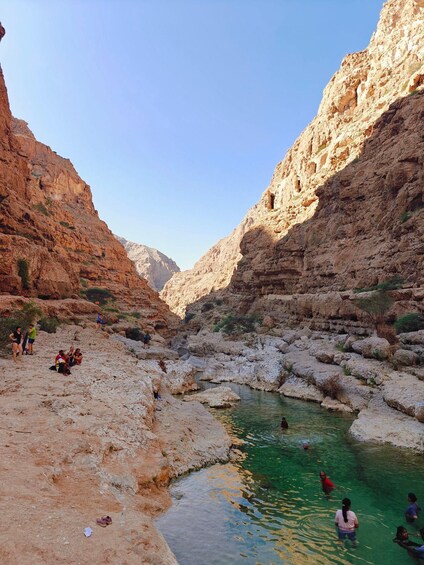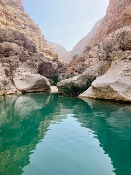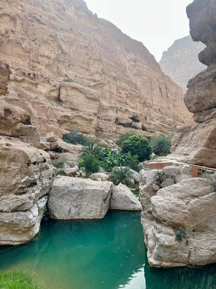As we arrive at the parking area nearby Wadi, take a very shortly quick boat ride to the other side of the bank. Then, start hiking through the valley for approximately 40 minutes to reach the hidden canyon and waterfalls.
