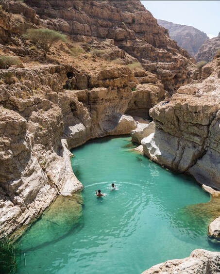 The best experience ever to discover the incredible oasis of Wadi Shab, one of the amazing places in Oman where you can breath the fresh air and chill blue clean water surrounded by mountains all arounds. Enjoy the full day stunning views of the canyon walls, plants & trees.