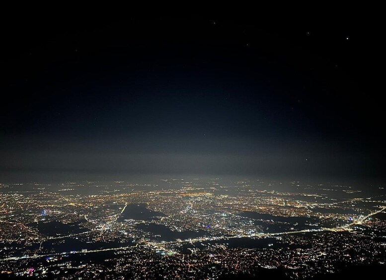 Night view of Sofia, mountain hiking tour to Kamen del Peak.