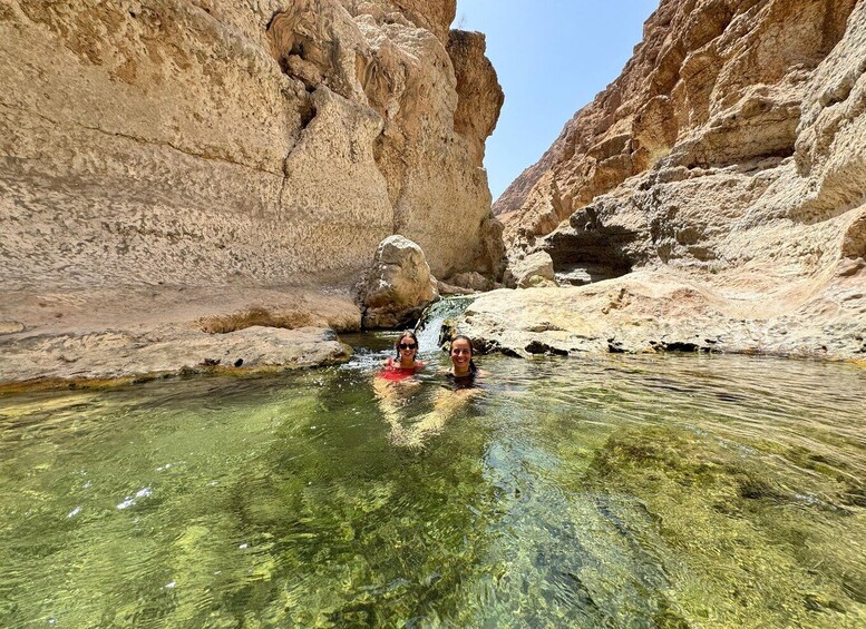 Discover Wadi Shab and the natural wonder of Bimmah Sinkhole on a full-day tour. Meet your guide at one of two convenient meeting points in Muscat—choose the option that suits you best—and enjoy an unforgettable journey through Oman’s stunning landscapes.