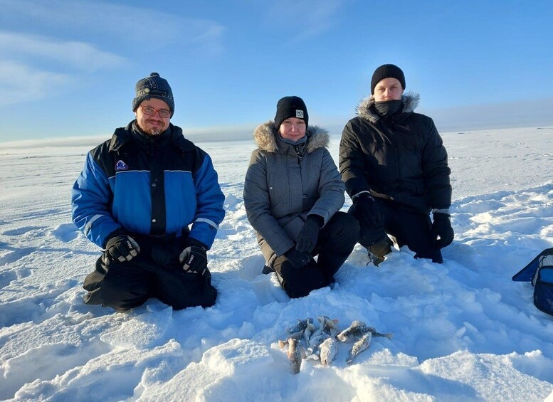 Arctic Sea Ice Fishing is our most popular winter experience. The Oulu sea area, located in the Gulf of Bothnia, turns into a frozen wonderland during the winter months, offering beautiful views over the frozen sea and the city skyline. The fish-rich sea is also an excellent place for ice fishing, and we usually catch fish on almost every trip.