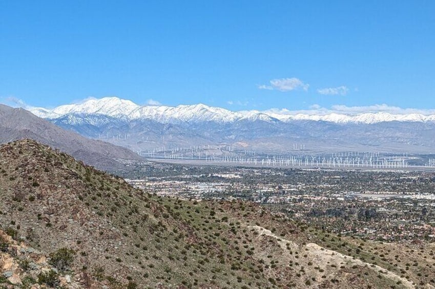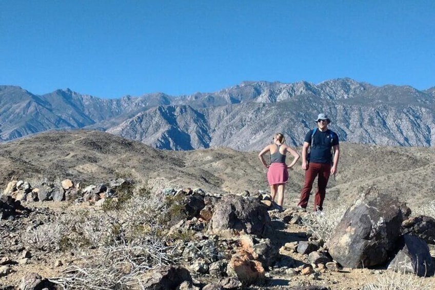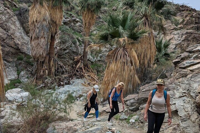 - Everyone must be at least moderately fit & able to walk at a moderate pace. The hike is a few miles long & has an elevation gain of about 800 feet & trail sections that're rocky, uneven & have loose dirt/rocks typical of Palm Springs hiking trails. The hike lasts approximately 2 hours 30 minutes at a moderate pace with most people, but I've done it in about 1 hour 45 minutes with very fit/experienced people & it's taken about 3 hours with less experienced people. Not recommended for sedentary/low fitness or very slow walkers. If anyone's having difficulties early on I'll advise they turn back for their comfort. If you're not sure if the hike is a good fit for you contact me. Wear shoes with good traction (no sandals). Dress for the weather forecast for the time we'll be hiking, layers are good, if sunny bring a hat, sunglasses & sun cream even during the winter on sunny days the sun can be pretty strong. Take lots of pics but no long photo sessions. Please don't be in a hurry to get the hike over with cause you have plans after & no talking about politics/polarizing topics. We'll take mini breaks during the hike. There are no bathrooms here, but I carry bathroom supplies. If booking for others please make them aware of physical/health & trail info for their ability. Also dogs are not allowed on any hiking trails in Palm Springs.