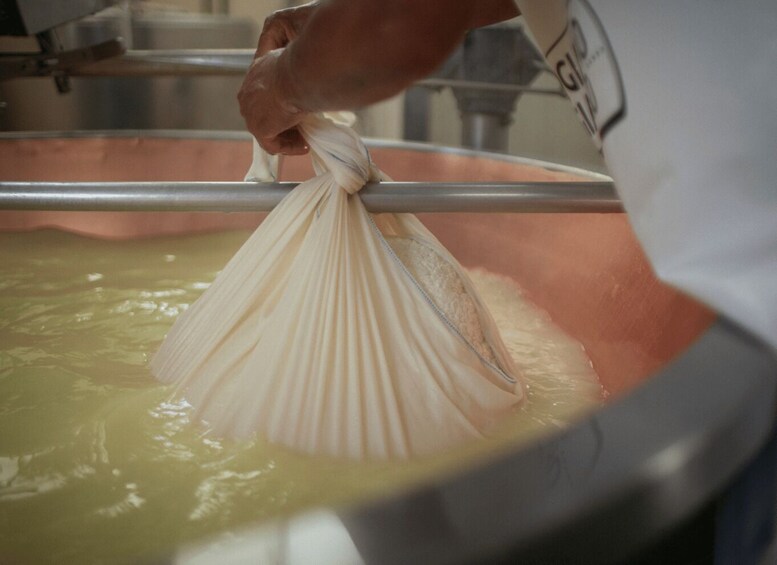 The experience begins at a local, family-run dairy that uses sustainable, organic farming methods. Your guide will introduce you to the dairy's closed-loop system, which starts in the fields where they grow organic feed for their cows. These cows produce the high-quality milk used to create authentic Parmesan cheese. You will follow the entire process, from the raw milk’s transformation into cheese to the formation of the iconic wheels.