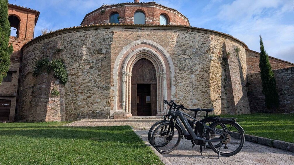 Finally, the E-bike allows us to push further, reaching the Tempietto di Sant'Angelo, a paleochristian gem. The return is unforgettable: we will ride along the ancient panoramic path of the Acquedotto, offering the most romantic and unique perspective on the city, before elegantly descending through Corso Vannucci.