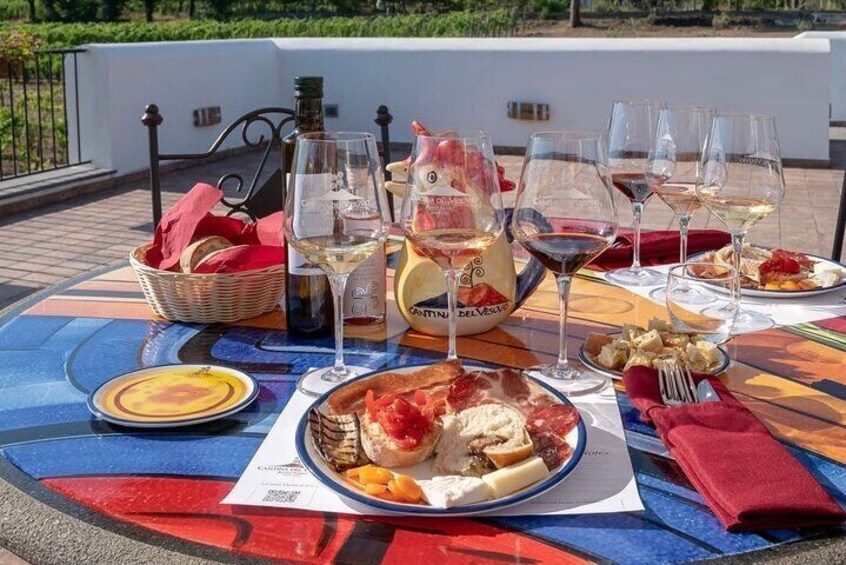 Lunch and Wine Tasting: Customers can add to the Tour a wine tasting with lunch in a Winery on the slopes of Vesuvius.