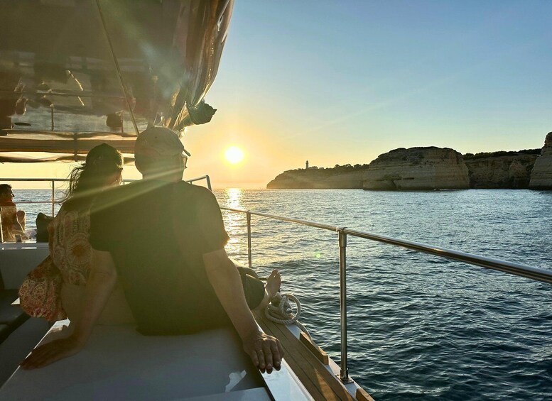 Portimao: Summer SUNSET Benagil Caves Tour | Eco Catamaran