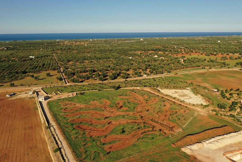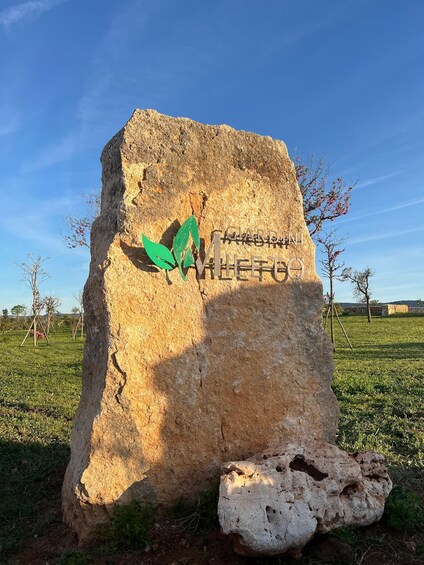 On the Via Francigena, just a few metres from the Montalbano Dolmen in the province of Brindisi, in the heart of the plain of monumental olive trees, on a strip of land owned by the Zizzi family, the MILETO GARDENS now stand.
