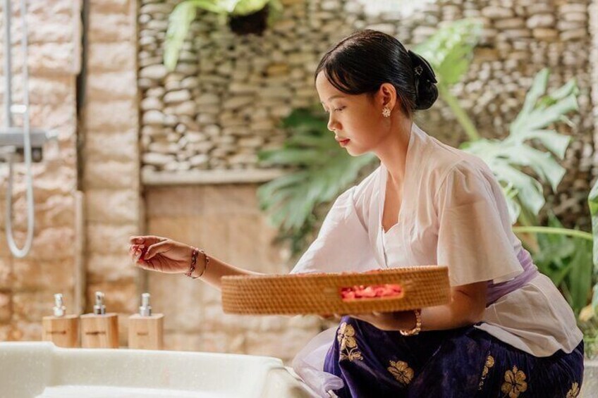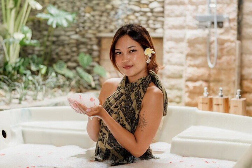 Massage + Flower Bath: After your massage, sink into a private tropical flower bath,a beautiful moment of serenity with views of Ubud’s ricefields.