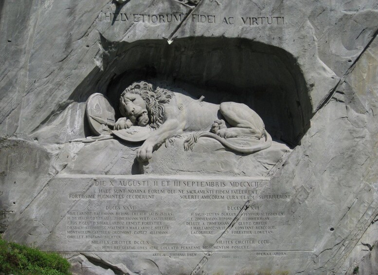 Your walk begins at the famous Chapel Bridge (Kapellbrücke), built in 1333 and decorated with historic painted panels, followed by the Water Tower, once used as a treasury and prison. Nearby stands the Lion Monument, carved into the rock to honour Swiss Guards who died during the French Revolution — described by Mark Twain as “the most moving piece of stone in the world.”