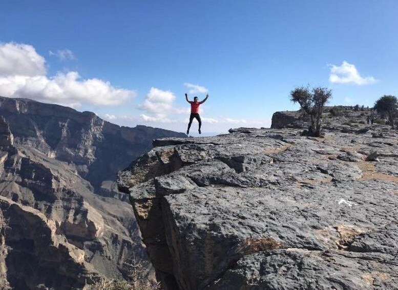 Then we drive towards Jabal Shams Mountain (Grand Canyon) This mountain road drives up to the Jebel Shams 3009 metres this mountain is one of the most adventurous Mountains in Oman, offering existing off-road experience and fantastic views, you reach canyon view which is 2000 metres stop there and enjoy the view and photo.