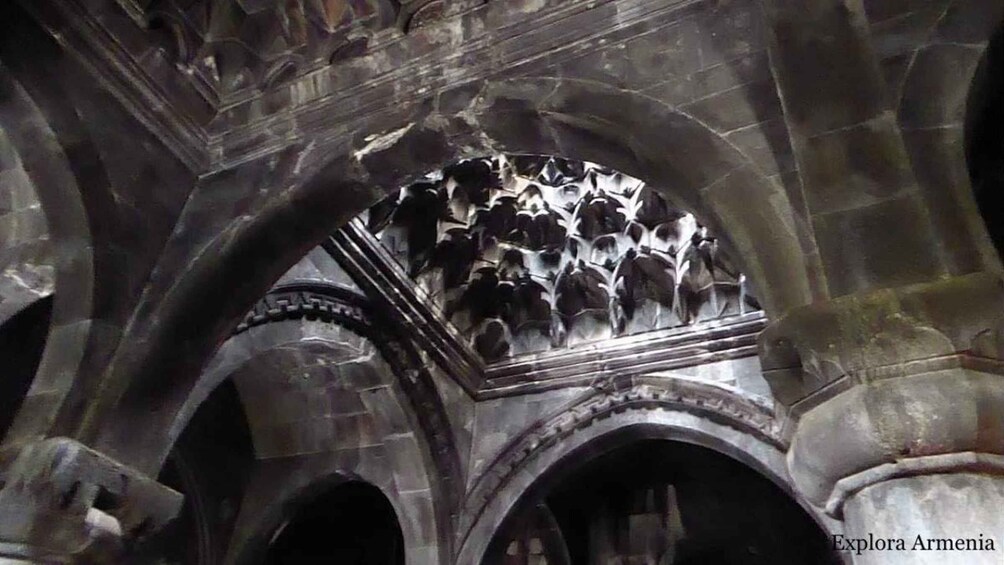 • Geghard which is a medieval monastery declared a World Heritage Site by Unesco. According to tradition The Geghard Monastery was founded by Saint Gregory in the 4th century on the site of a sacred spring. The current constructions of the monastery, which are partially excavated in the rock, date from the 13th century. The peculiar character of the construction is reflected in its austerity and the magnificent natural scenery of the canyon, surrounded by precipices and curved cliffs.