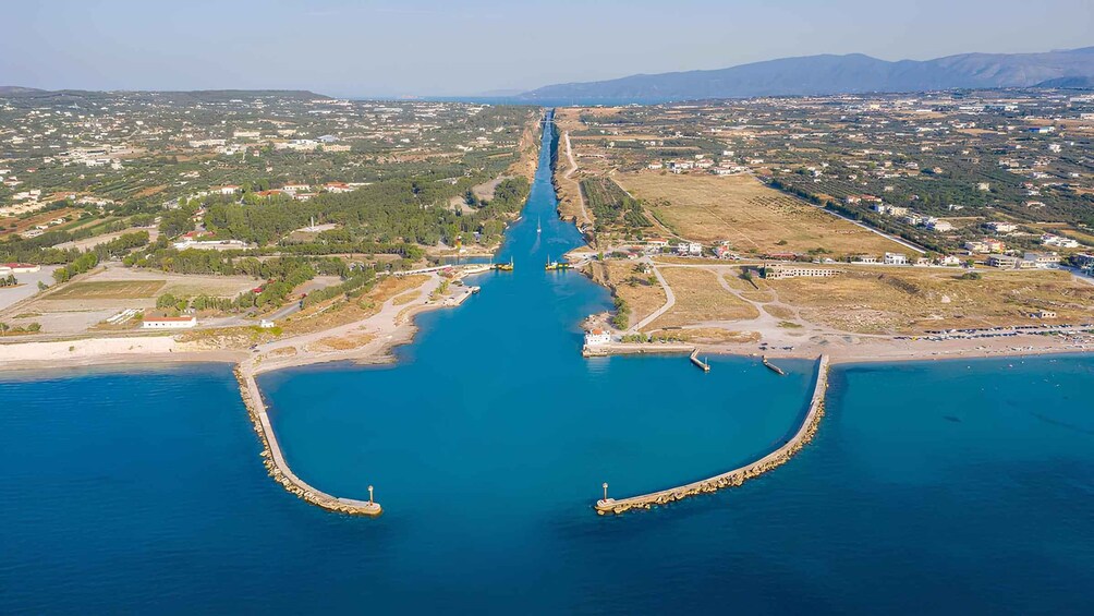 You start your morning journey from Athens and head to the Isthmus of Corinth, where you make your first stop. You're standing right above the impressive canal, you see the vertical rocks rising from below you, and you feel the energy of this unique technical work. You've got time for photos and a quick coffee before you go.