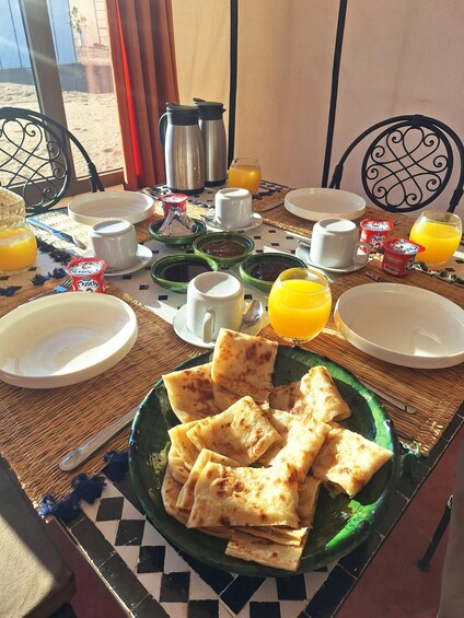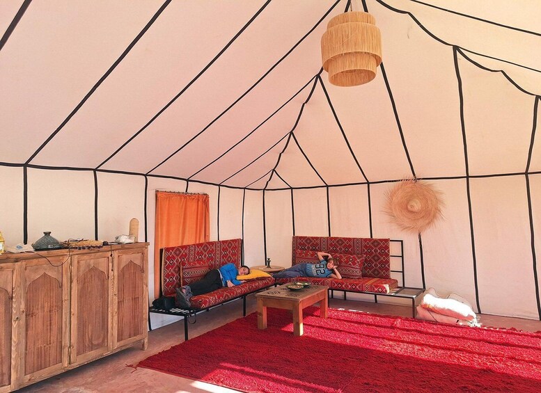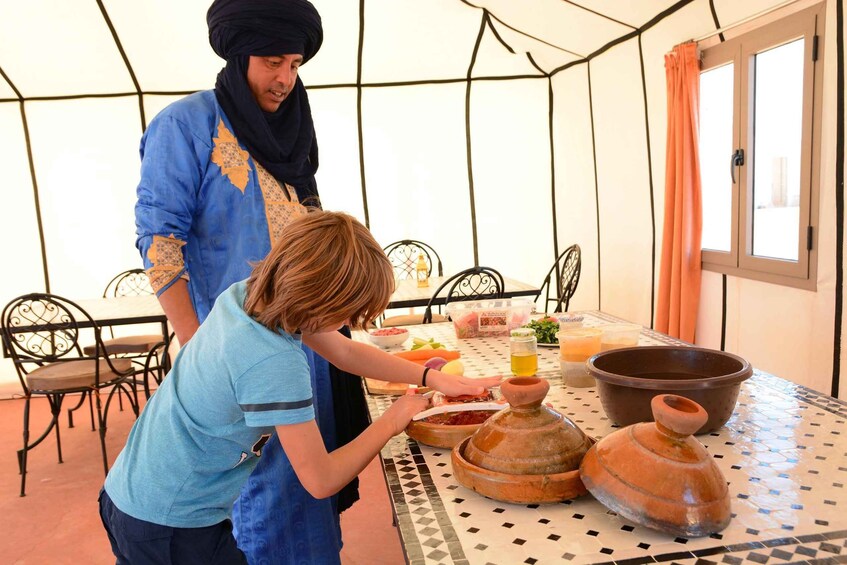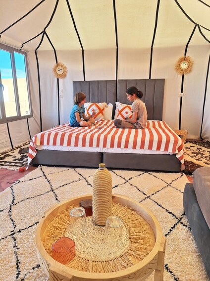 The highlight of your trip awaits in the Sahara Desert, where you'll spend two magical nights in a luxury desert camp. Here, enjoy sunrise/sunset, try sandboarding on the dunes, and fall asleep under a canopy of stars. Meet local nomads, learn about Amazigh culture, and discover ancient pottery techniques in Tamegroute.