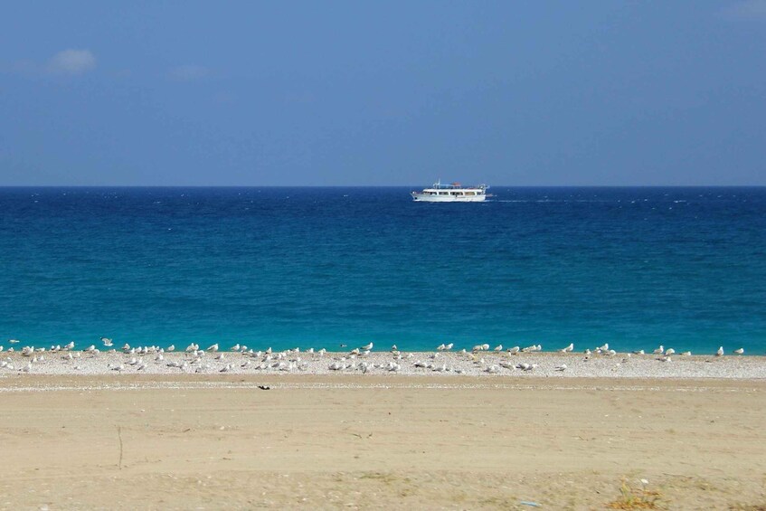 Stop at a local taverna to taste greek food. Continue through Greek villages and head off road to the east coast of Rhodes where you can refresh in the clear blue waters of the Mediterranean Sea.