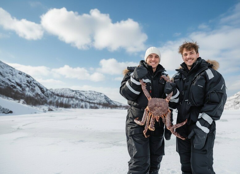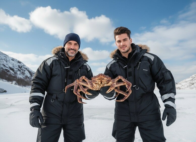 Meet local fishermen, your expert guides for this ritual, who will haul up crab pots from the icy depths of the Barents Sea. Witness the emergence of these colossal, sprawling King Crabs from the dark, cold waters, a true spectacle of nature's grandeur and abundance.