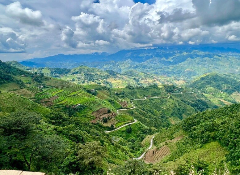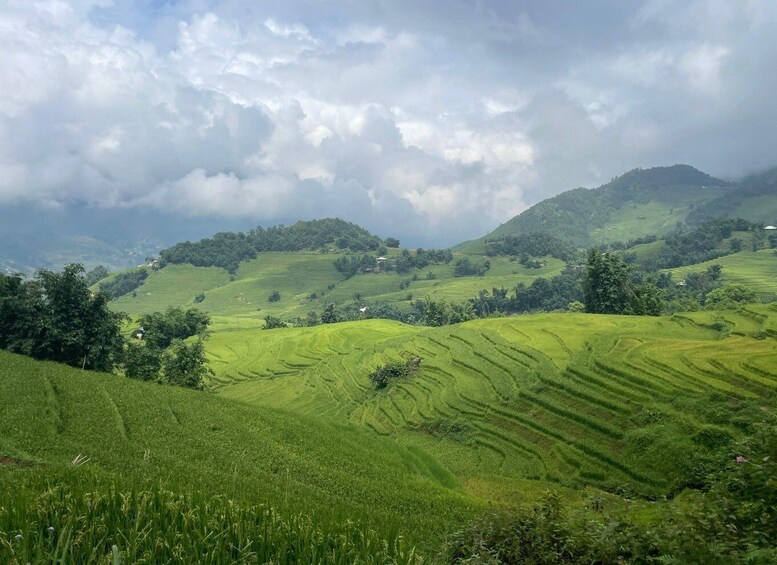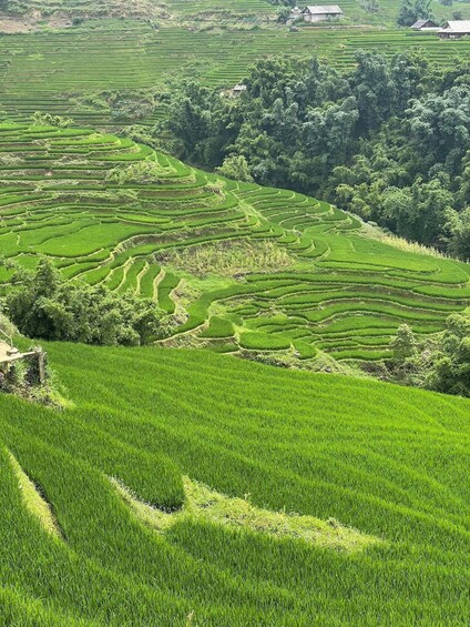 Finally, trek from Hang Da village down to Giang Ta Chai village. Pass through terraced rice fields stretching along the mountain slopes, admire the green valley, flowing streams, and small bamboo bridges, and visit the homes of H'Mong and Dao ethnic groups to learn about their daily lives.