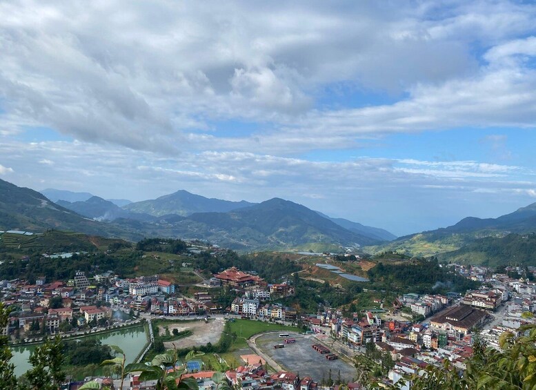 Continue to Ham Rong Mountain, where a magnificent mountain landscape unfolds before your eyes, with Sa Pa town hidden in the mist, terraced rice fields, and the undulating Hoang Lien Son mountain range in the distance. Pass through meticulously maintained flower gardens with many characteristic high-mountain flowers that bloom seasonally.