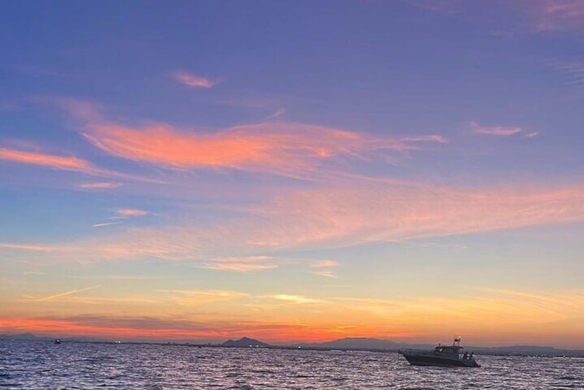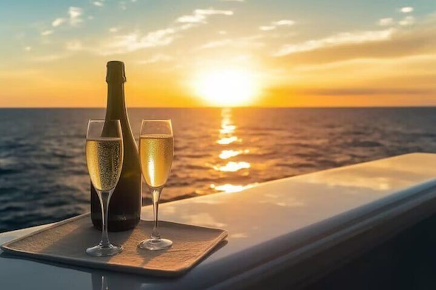 Sunset on a Yacht on the Torrevieja Coast with Champagne