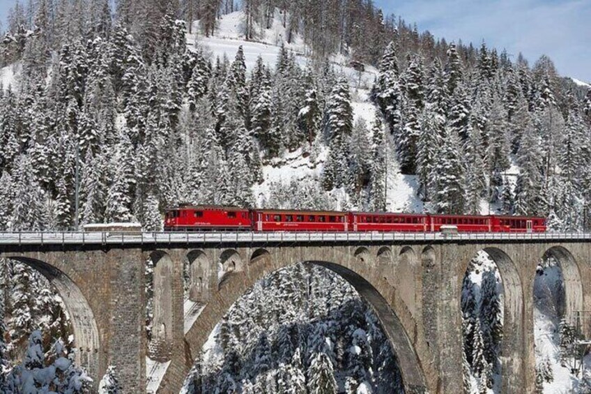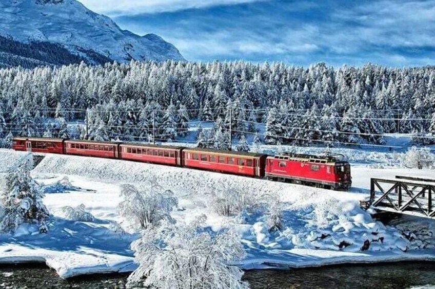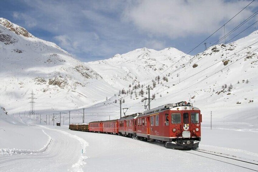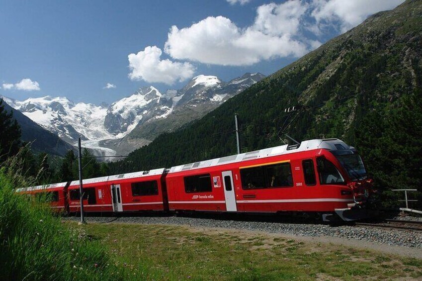 Swiss Alps Bernina Train and St Moritz Day Tour from Milan
