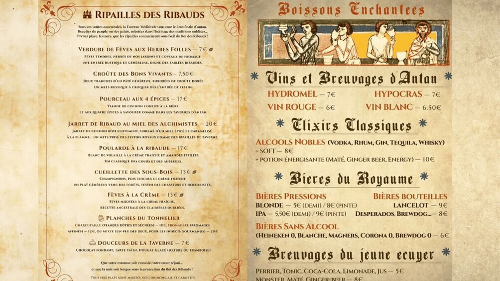 Whether you're a noble traveller, a runaway beggar, or just curious, no one leaves an evening at La Taverne Médiévale unscathed… because no one knows what the King of Ribauds and his acolytes have in store for you.