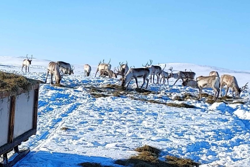 During the tour, you get to see the magnificent fell view and wildlife of Paistunturi wilderness area, listen to stories about life in the Arctic and reindeer herding and see wild reindeer in their natural habitat in the wilderness. Hot drinks and small snacks are included in the tour.