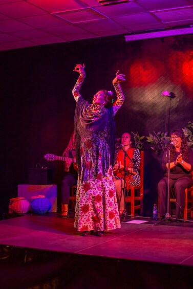 The dancers perform each piece with arm movements, body contoneos and 'zapateos' according to each flamenco palo, accompanied by the melody of the guitar and the deep voice of the cantaor.