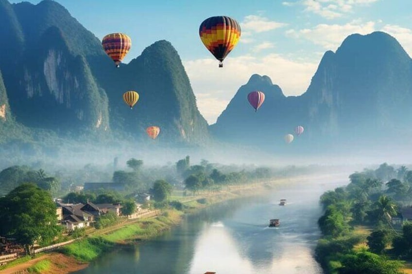 Vang vieng Shared Tour:Longtail boat,Hot Air Balloon,pick-up