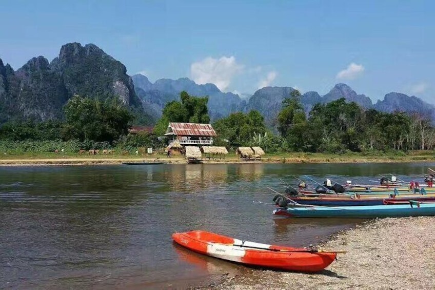 Vang vieng Shared Tour:Longtail boat,Hot Air Balloon,pick-up in English