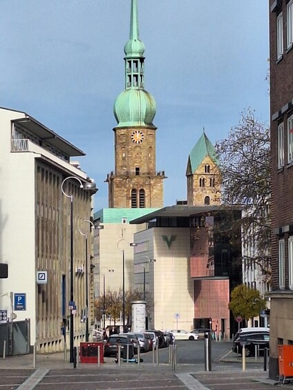 We'll start our hike on the 3000-year-old Westenhellweg, which was a trade route from the Maas to the Memel and was also used for salt production. Then we'll walk to the Freistuhl, which has appeared in Dortmund's historical sources for 1000 years. From here, we'll head to the KrügerPassage, where stock market activities and many events took place until 1943.