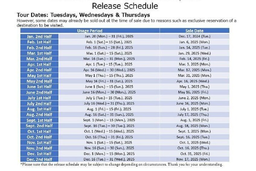 - This tour will have additional dates as they become available for the first and second half of each month according to the release schedule.