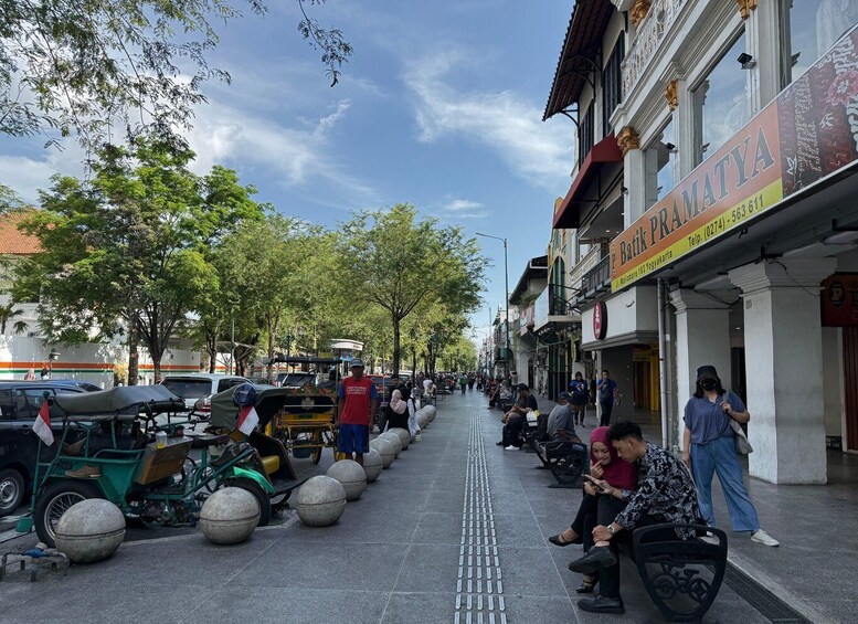 Your journey begins in the vibrant pulse of Malioboro Street, where the sights, sounds, and flavours of daily life surround you. From colourful batik stalls to the lively Beringharjo Market, you’ll witness how tradition thrives in the heart of the city.