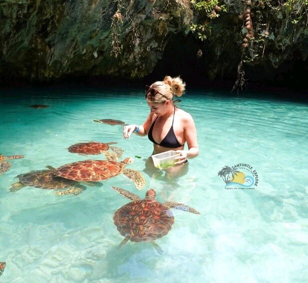 Swimming with turtles at Salaam Cave Aquarium