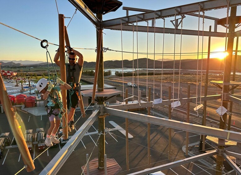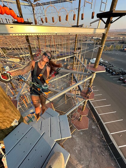 Guests begin their adventure with a safety briefing and harness fitting from trained staff before heading up to the aerial courses. Once equipped, participants can explore the park’s obstacles and ziplines at their own pace during the experience.